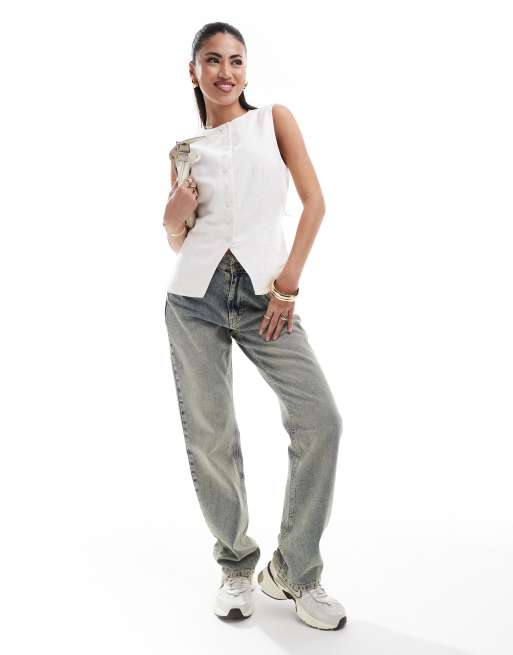 Abercrombie & Fitch - Débardeur style gilet de costume en lin mélangé - Blanc