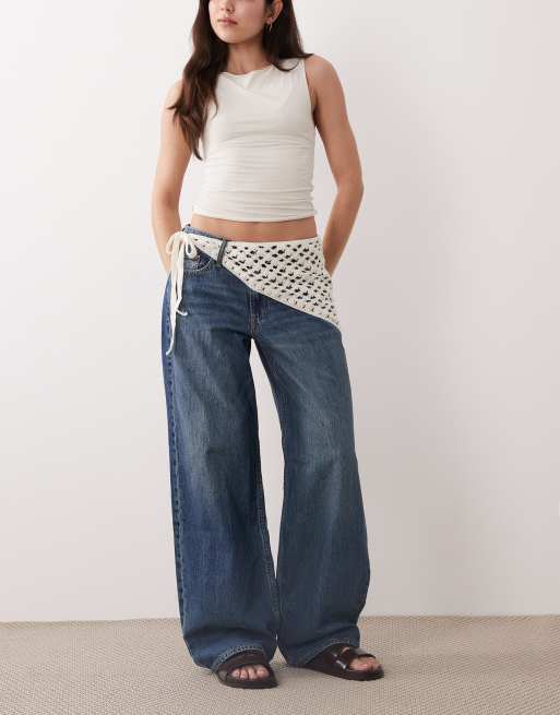 Abercrombie & Fitch - Jean droit à taille haute et détail superposé - Bleu moyen délavé