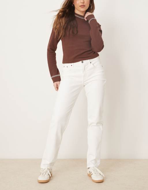 Abercrombie & Fitch - Jean droit à taille mi-haute - Blanc