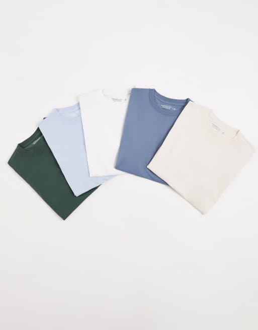 Abercrombie & Fitch - Lot de 5 t-shirts - Bleu, beige et blanc