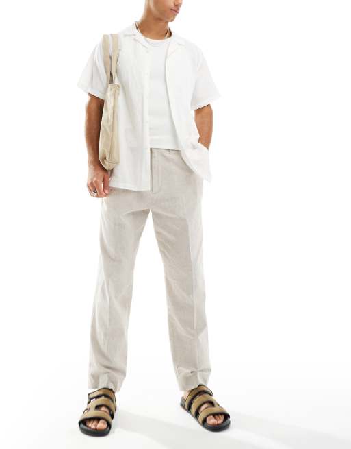 Abercrombie & Fitch - Malone - Pantalon baggy à pinces en lin mélangé - Beige