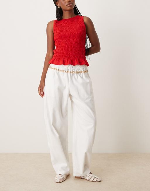 Abercrombie & Fitch - Pantalon bouffant à enfiler avec cordon de serrage à la taille - Blanc