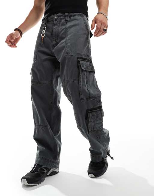 Abercrombie & Fitch - Pantalon cargo fonctionnel ultra baggy en sergé - Anthracite