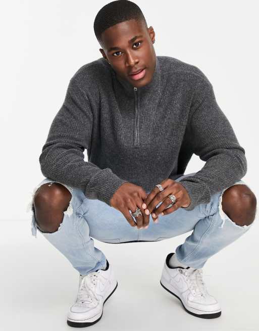 Abercrombie & Fitch - Pull en maille duveteuse douce à demi-fermeture éclair - Gris
