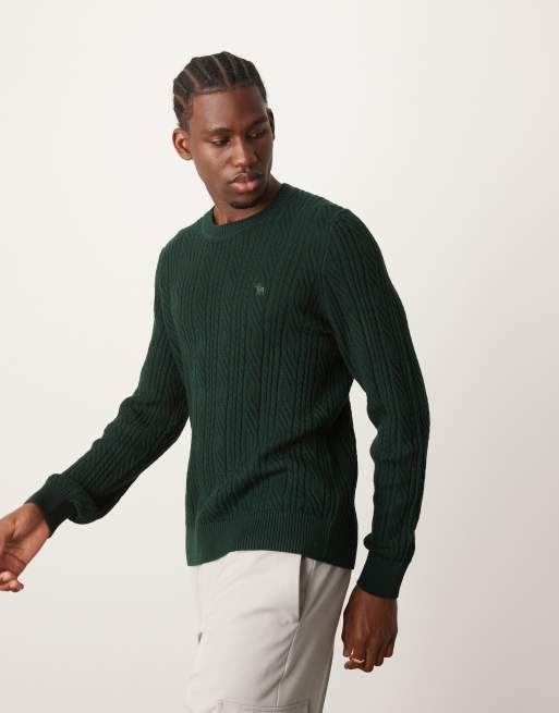 Abercrombie & Fitch - Pull en maille torsadée de laine mérinos - Vert foncé