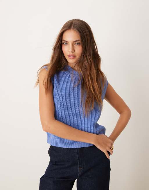 Abercrombie & Fitch - Pull sans manches ras de cou en maille - Bleu