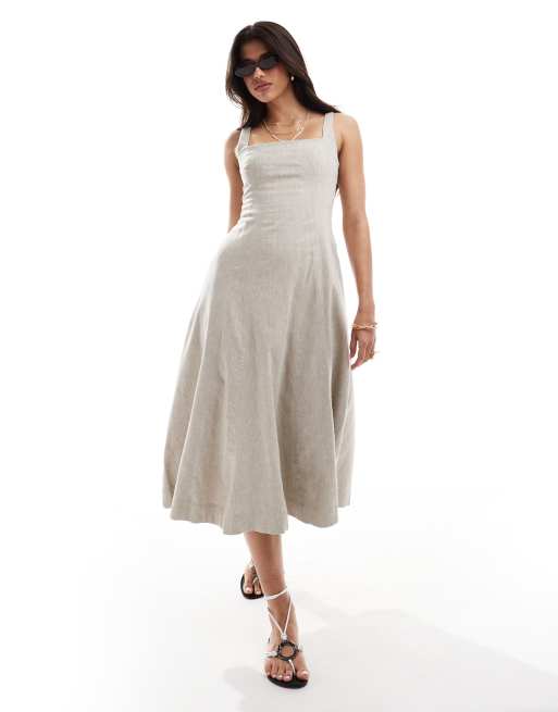 Abercrombie & Fitch - Robe colonne mi-longue en lin mélangé - Blanc