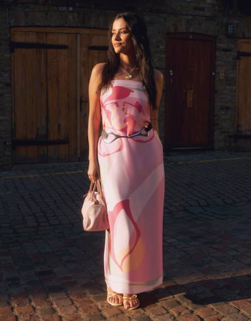 Abercrombie & Fitch - Robe longue bustier en satin à fleurs - Rose