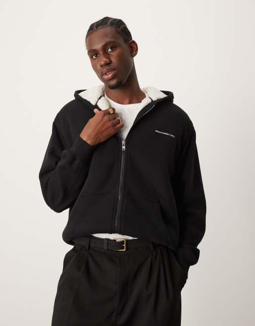 Abercrombie & Fitch - Sweat à capuche à doublure en polaire avec logo emblématique - Noir