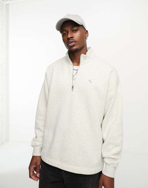 Abercrombie & Fitch - Sweat décontracté à logo emblématique et encolure zippée - Gris chiné