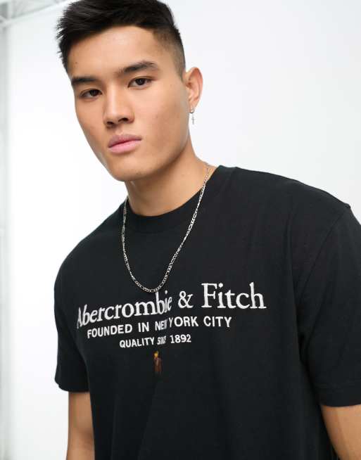 Abercrombie & Fitch - T-shirt avec logo rétro - Noir