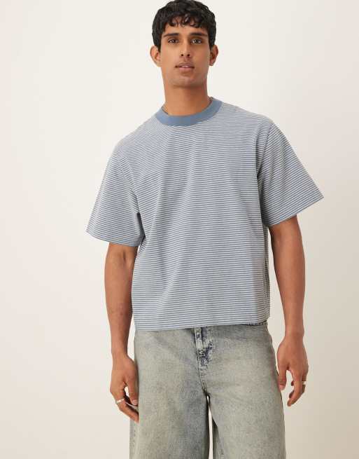 Abercrombie & Fitch - T-shirt crop top épais de qualité supérieure - Rayures grises