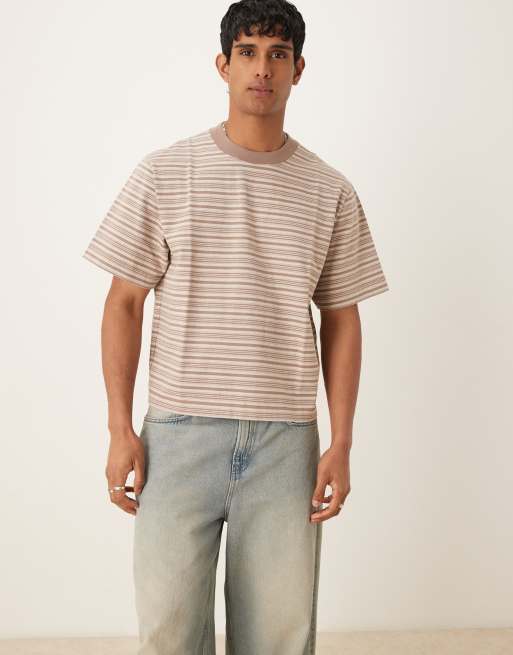 Abercrombie & Fitch - T-shirt crop top rayé en tissu épais de qualité supérieure - Marron