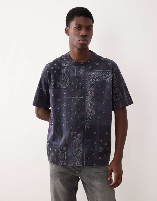 Abercrombie & Fitch - T-shirt épais de qualité supérieure à imprimé bandana - Bleu
