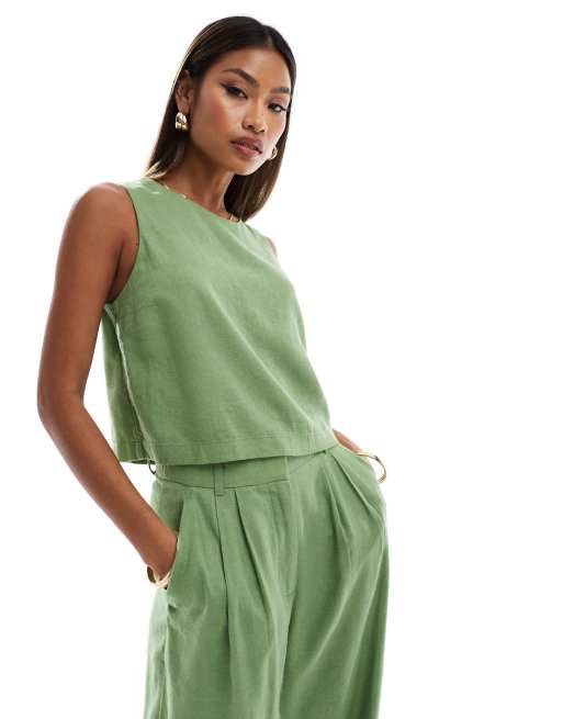 Abercrombie & Fitch - Top d'ensemble en lin mélangé - Vert