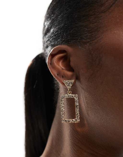 Accessorize - Boucles d'oreilles à pendants carrés martelés - Doré