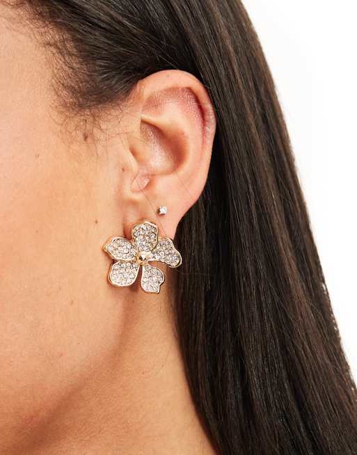 Accessorize - Boucles d'oreilles fleurs à cristaux - Doré
