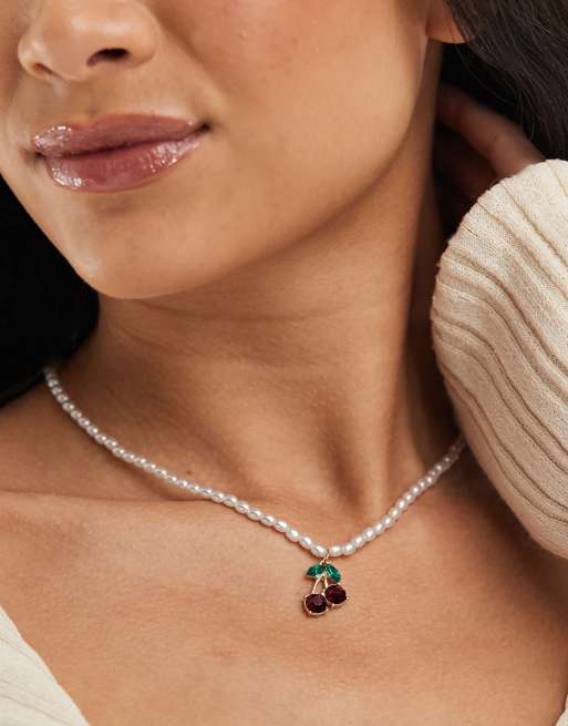 Accessorize - Collier de perles avec pendentif cerise - Blanc