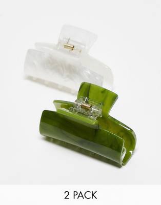Accessorize - Lot de 2 pinces à cheveux - Vert/nacré