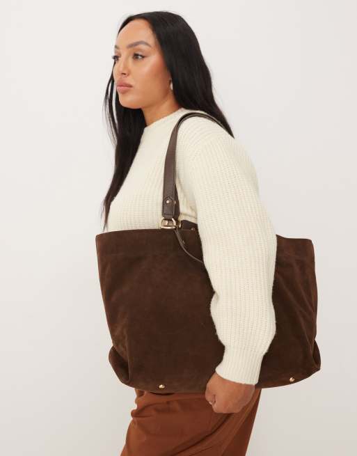 Accessorize - Tote bag en daim à poignées multiples - Chocolat