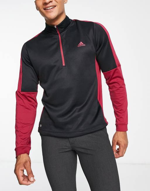 adidas - Golf - Sweat-shirt à fermeture à glissière 1/4 à empiècements - Noir et rouge
