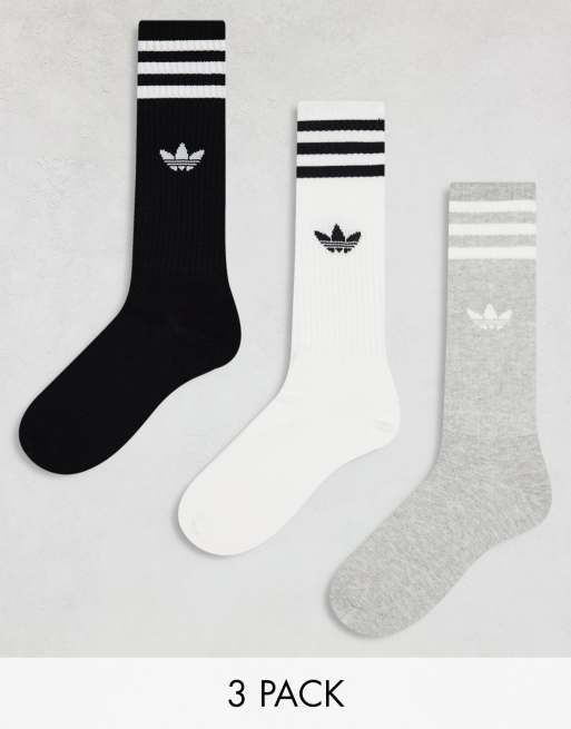 adidas Originals - Lot de 3 paires de chaussettes montantes - Blanc, gris et noir