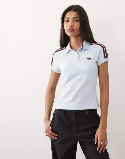 adidas Originals - Polo à 3 bandes - Bleu ciel et bordeaux