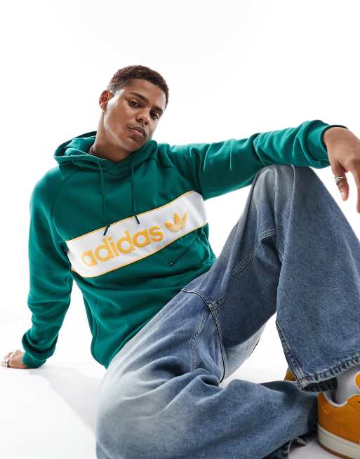 adidas Originals - Sweat à capuche avec logo linéaire - Vert foncé et jaune
