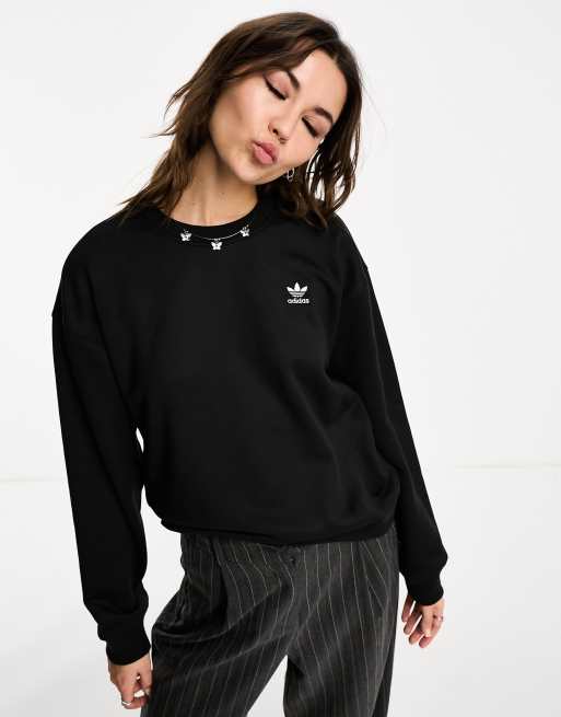 adidas Originals - Sweat ras de cou ample à logo trèfle - Noir