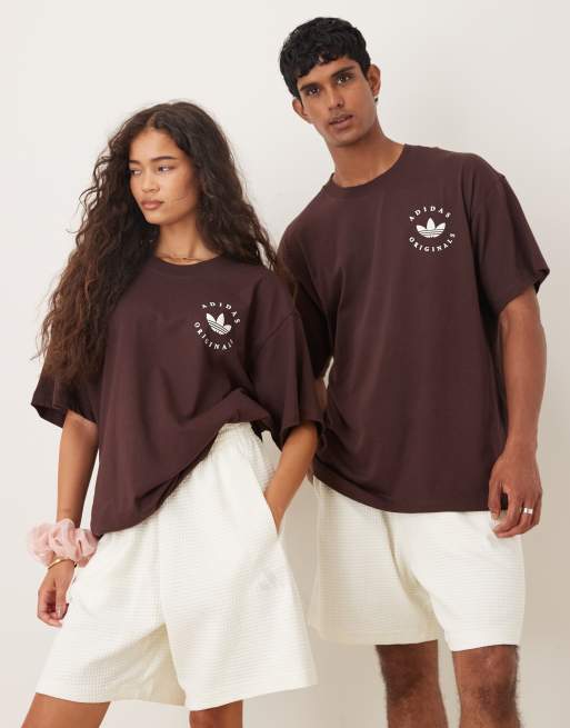 adidas Originals - T-shirt à imprimé trèfle - Marron