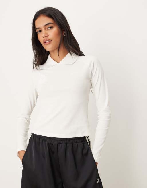 adidas Originals - T-shirt à manches longues et écusson logo - Blanc cassé
