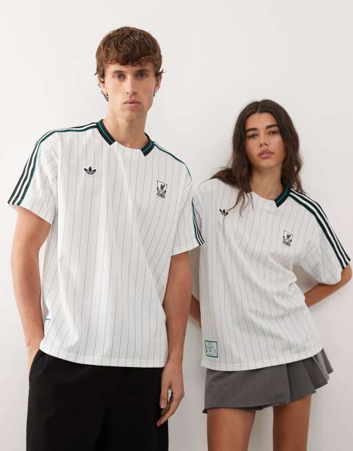 adidas Football - Maillot à imprimé Liverpool Icon - Blanc et vert à rayures