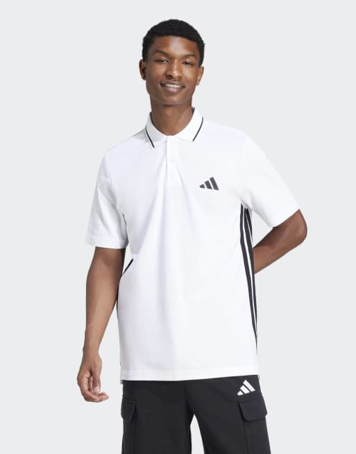 adidas Performance - Essentials - Polo en piqué à 3 bandes - Blanc et noir