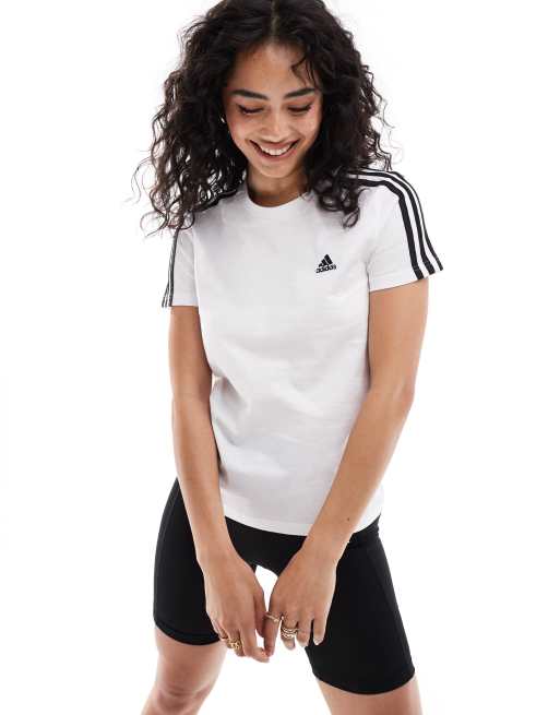 adidas Performance - Essentials - T-shirt ajusté avec 3 bandes - Blanc