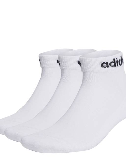 adidas Performance - Lot de 3 paires de chaussettes basses rembourrées avec logo linéaire - Blanc et noir