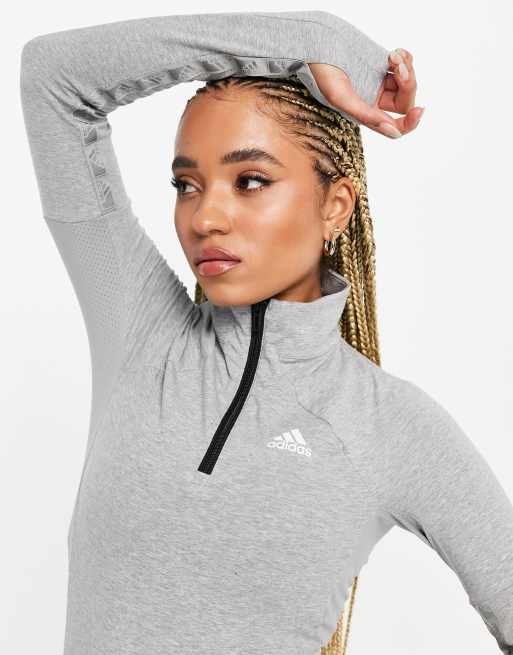 adidas Training - Motion - Top manches longues à fermeture éclair partielle - Gris