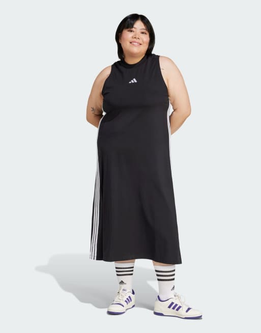 adidas - Essentials - Robe dos nu longue grande taille à 3 bandes - Noir/blanc