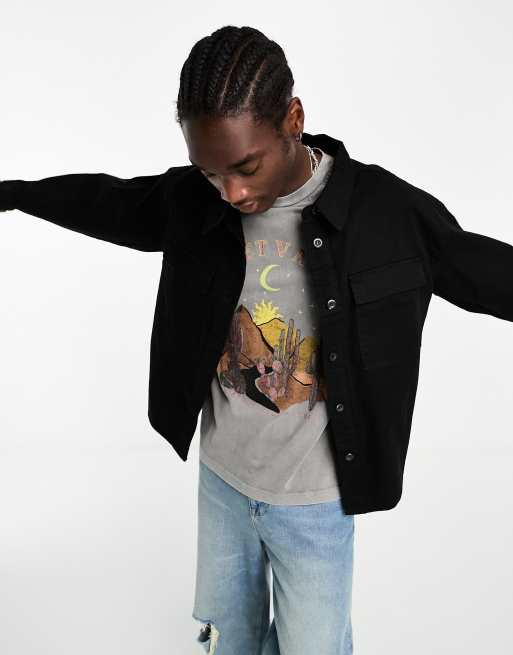 ADPT - Surchemise oversize coupe carrée en sergé - Noir