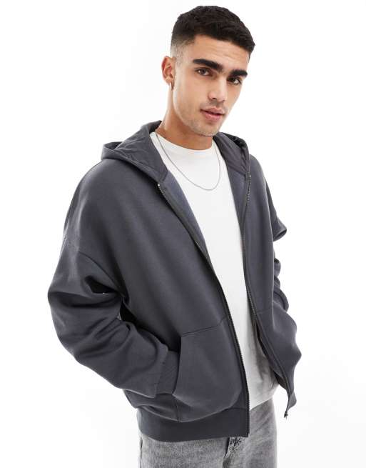 ADPT - Sweat à capuche oversize avec fermeture éclair double sens - Gris délavé