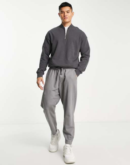 ADPT - Sweat à capuche oversize style bomber à col zippé - Gris foncé délavé