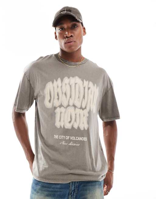 ADPT - T-shirt oversize avec imprimé gothique sur la poitrine - Marron délavé