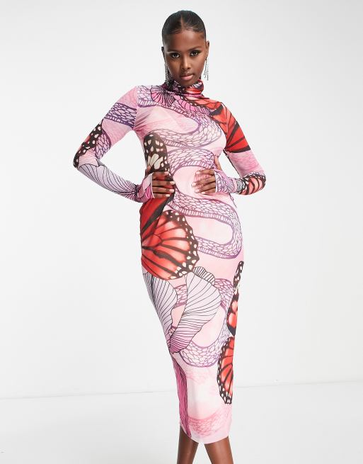 AFRM - Robe mi-longue en tulle à manches longues - Rouge