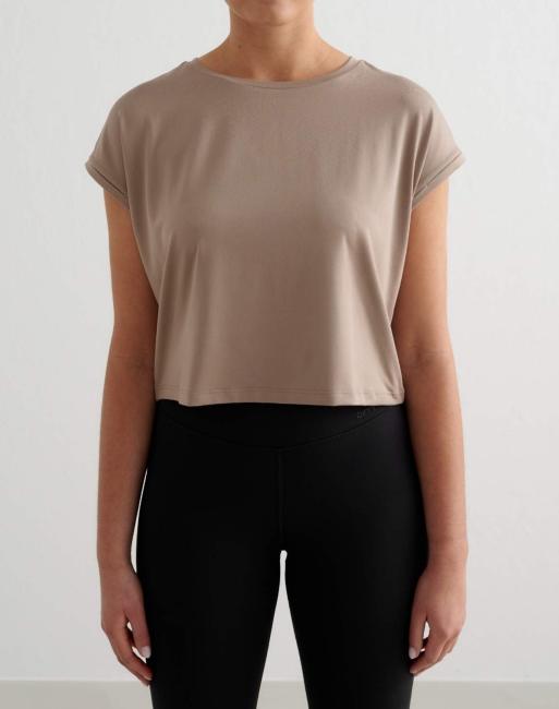 Aim'n - Top basique doux à manches roulées - Beige expresso