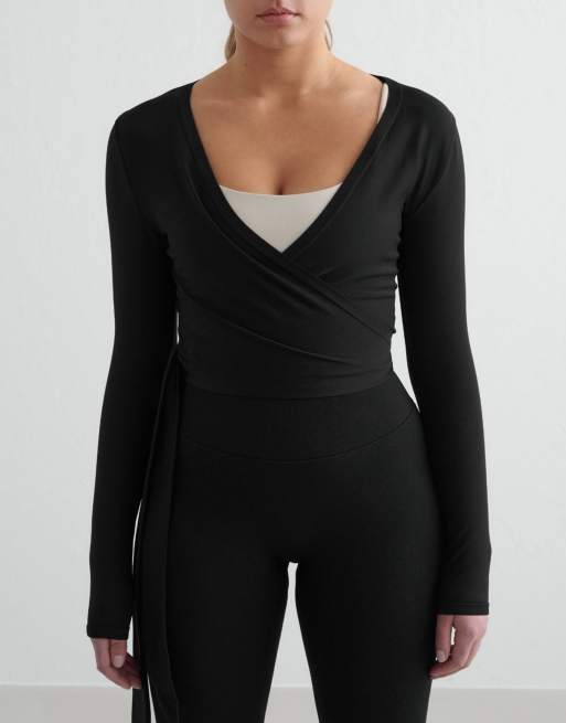 Aim'n - Top cache-cœur effet sculptant sans coutures à manches longues - Noir
