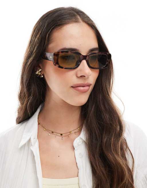 Aire - Ceres - Lunettes de soleil fines et rectangulaires à verres jaunes - Écaille de tortue