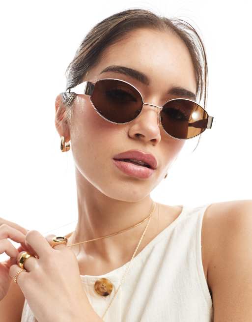 AJ Morgan - Lunettes de soleil ovales en métal - Doré