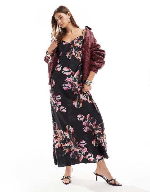 AllSaints - Bryony - Robe longue satinée à imprimé - Noir