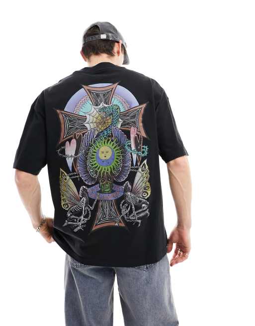 AllSaints - Freespirit - T-shirt à imprimé graphique - Noir délavé