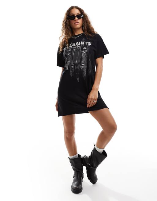 AllSaints - Riproar - Robe t-shirt imprimée - Noir