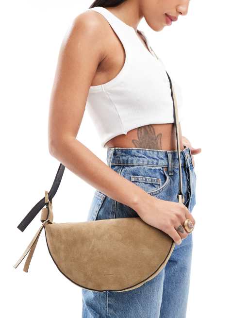 AllSaints - Sac bandoulière demi-lune en daim - Marron clair